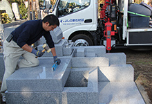 よしの家石材部の施工は、基本的に自社で施工をしております。すべて下請け業者に任せる事はありませんので、ご安心してお任せください。